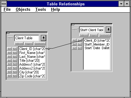 The following example interface shows the relationships between tables in a database. You can iterate through all the collections and objects in the Database object and then use Visual Basic controls to display the information graphically.