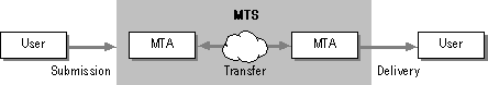 In the following example, a user agent submits a message to the MTA within the MTS for delivery to one or more MTS users. The MTS accepts the message and provides any necessary store and forward features, such as distributing the message to more than one recipient. The MTA then routes and delivers the message.