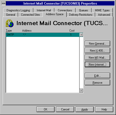 For more information about address spaces, see the Microsoft Exchange Server Administrator's Guide.