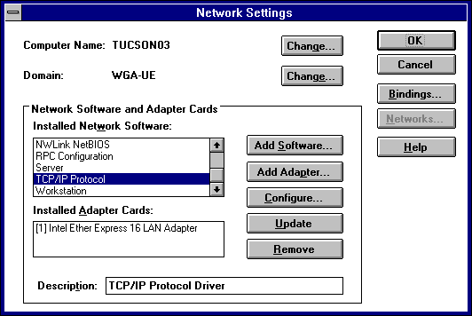 2. In the Installed Network Software box, select TCP/IP Protocol, and then choose Configure.