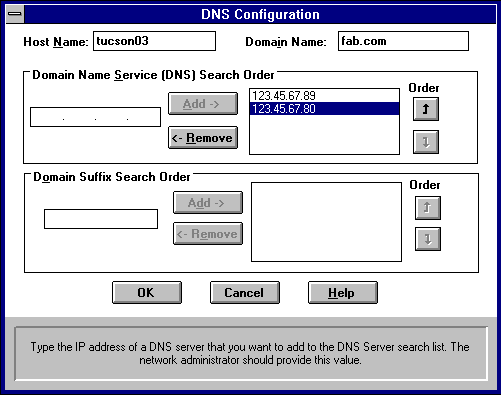 Whenever possible, the TCP/IP DNS host and domain names should match the Microsoft Exchange Server organization and site names. Check the Windows NT TCP/IP configuration by completing the following steps: