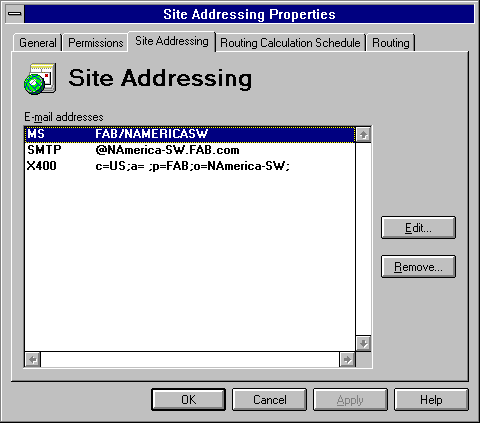 For more information about site addresses, see the Microsoft Exchange Server Concepts and Planning Guide and the Microsoft Exchange Server Administrator's Guide.