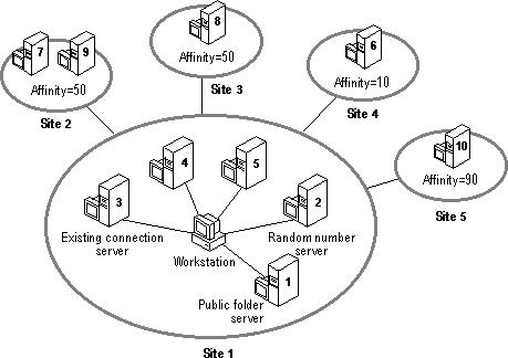 4. Other sites. If public folder replicas are not available in the site but there is at least one other site available with replicas, the affinity number is used to determine the order in which connections are attempted.
