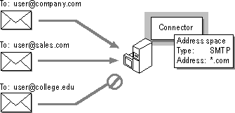 The path a connector uses to send messages outside the site is represented by an address space. The address space identifies the recipient address types and addresses. A connector must have at least one address space.