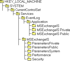 The following diagram shows the keys created in the registry when the information store is installed by Microsoft Exchange Server Setup.