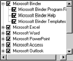 If you use the modified STF file in interactive mode, the state of the check boxes in the All Components box represents the default settings that are presented to the user during client Setup. For example, if you select the Office Tools check box, that check box is selected when the user runs client Setup interactively and views the options for a Custom installation.