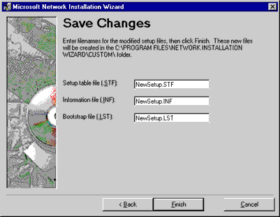 Note Because the LST, STF, and INF files are interrelated, you cannot rename them directly on disk after you have created them with the Network Installation Wizard. To change the name of any of these files, run the Network Installation Wizard again and specify a different name.