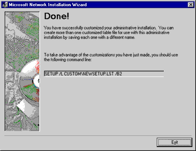 When the Network Installation Wizard finishes writing the new LST, STF, and INF files, it displays