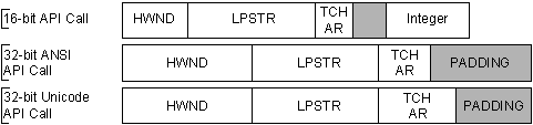 | Handle (hWnd, hDC, hMenu) | 2 bytes | 4 bytes |
