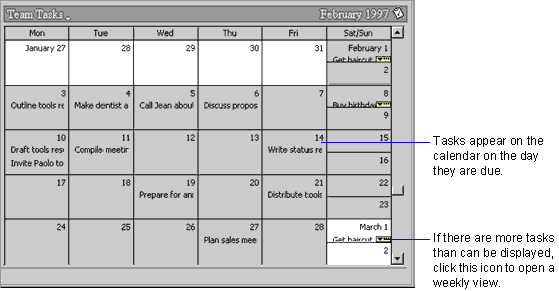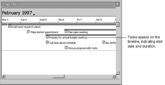 As an example of the flexibility afforded with Outlook views, this section includes illustrations that show the same task data displayed in three different views.
