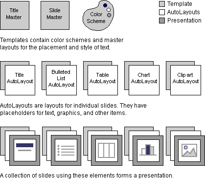 The following illustration shows how PowerPoint components fit together to create a presentation.