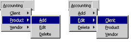 Using submenus, you can present the same items in either of the ways shown in the following illustration.