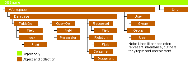 In Visual Basic, the DBEngine object represents the Jet database engine itself. DBEngine contains within it a collection of Workspaces—the first of which, Workspaces(0), is created automatically. A Workspace object is a session in which you can create and open a database object. The following example uses the DDL features of DAO to create an MDB database file: