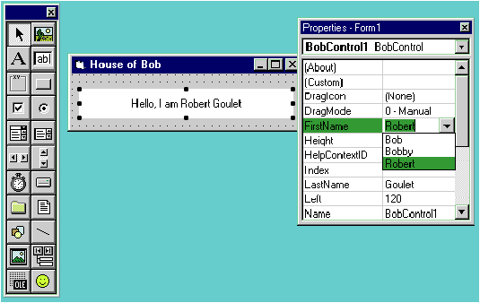 Sub Foo() BobControl1.FirstName = BOB End Sub
