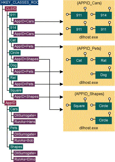 Figure 5 CLSIDs, AppIDs, and Surrogates