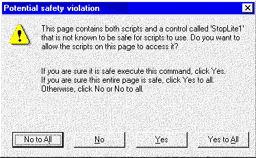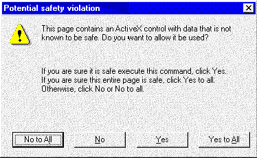 Next, Internet Explorer 3.0 checks to see if the control is safe for scripting. If not, it displays a dialog box similar to Figure 7.