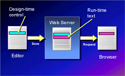 Unlike an ActiveX control, a Web design-time control is never "alive" at run time. Instead, Web design-time controls persist run-time text that is acted on by downstream text consumers such as browsers and components running on Web servers. A host container can use them extensively to provide easy authoring of Active Server Pages that contain scripting and ActiveX server components.